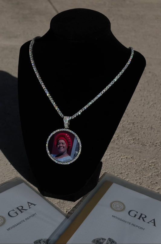 VVS Moissanite tennis chain with 45mm Photo pendant