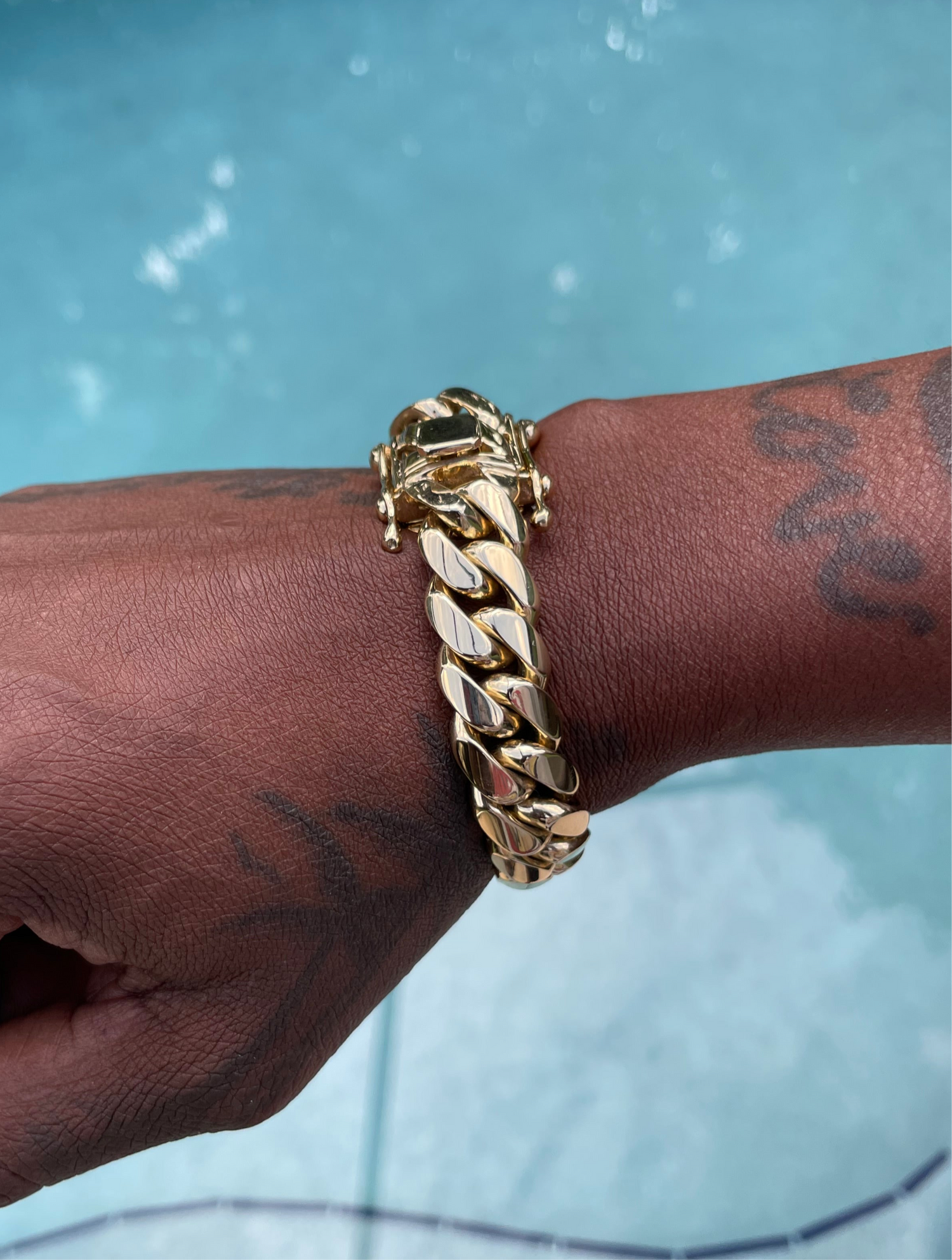 4MM 14k Gold Miami Cuban Link Bracelet 999 Silver