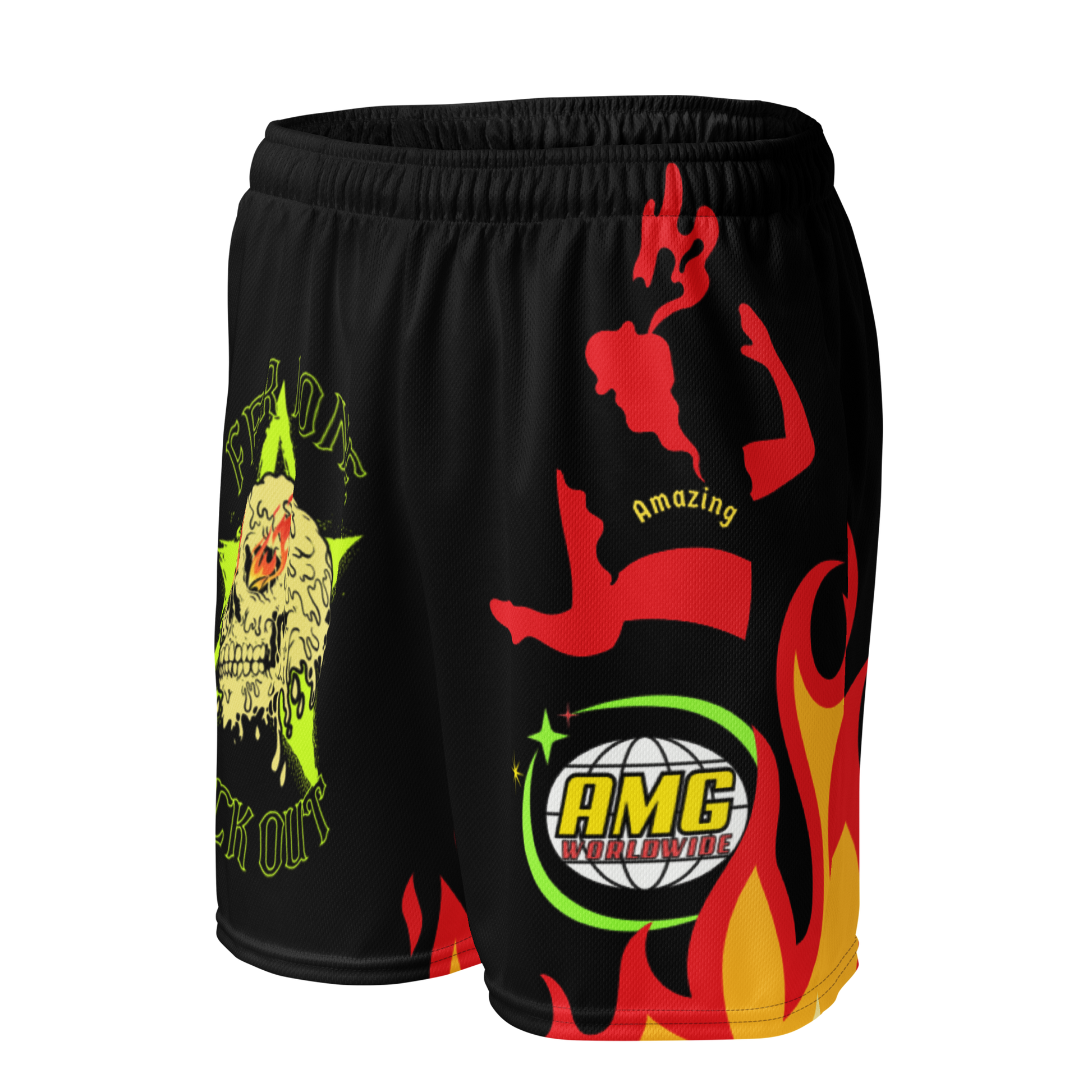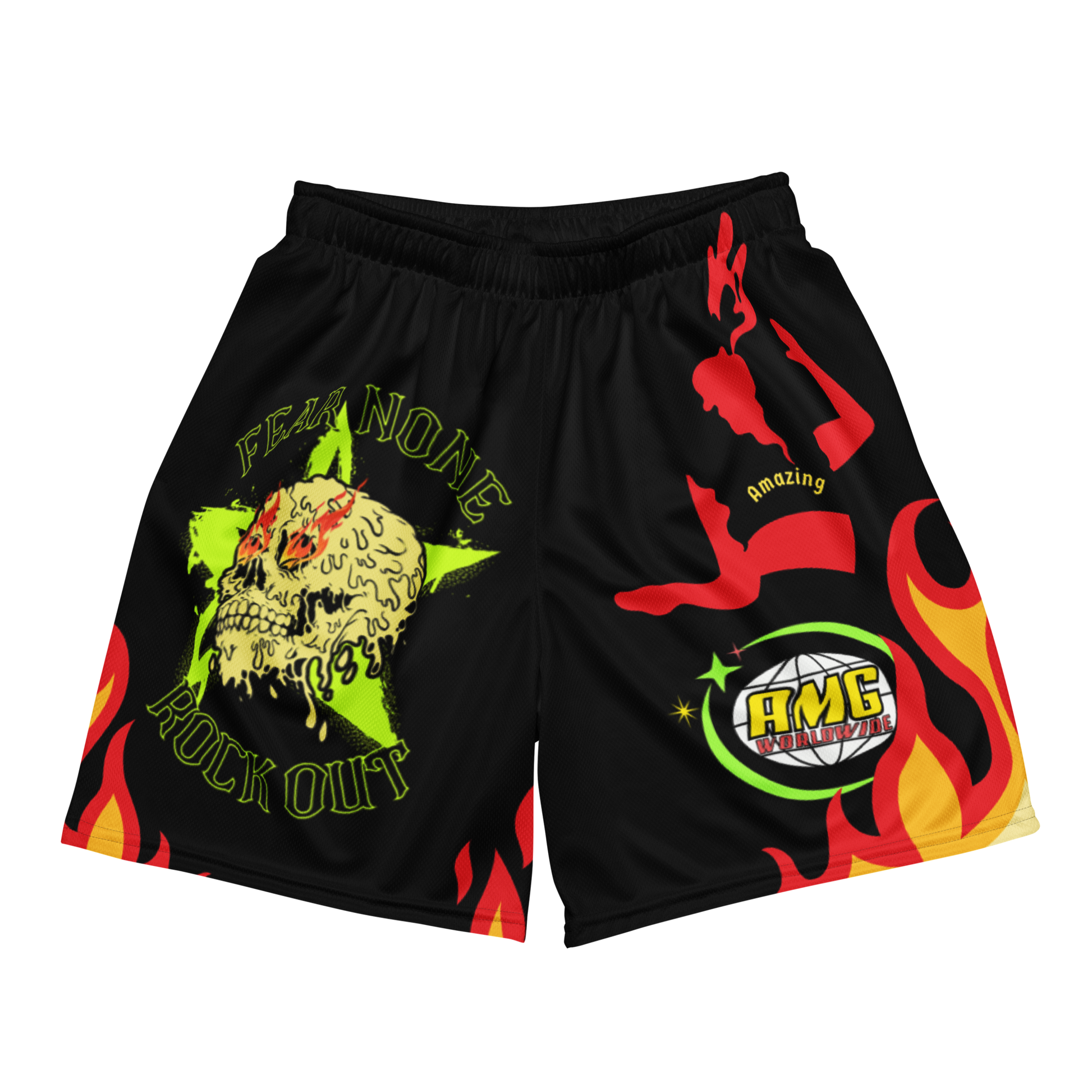 These A.M.G ROCK OUT shorts are the perfect choice for those who need flexibility in their attire. Whether you’re hitting the gym, running errands or enjoying an outdoor activity, they’ll be your trusty companion. Look good, feel good, and stay comfortable, all with the unisex mesh shorts.